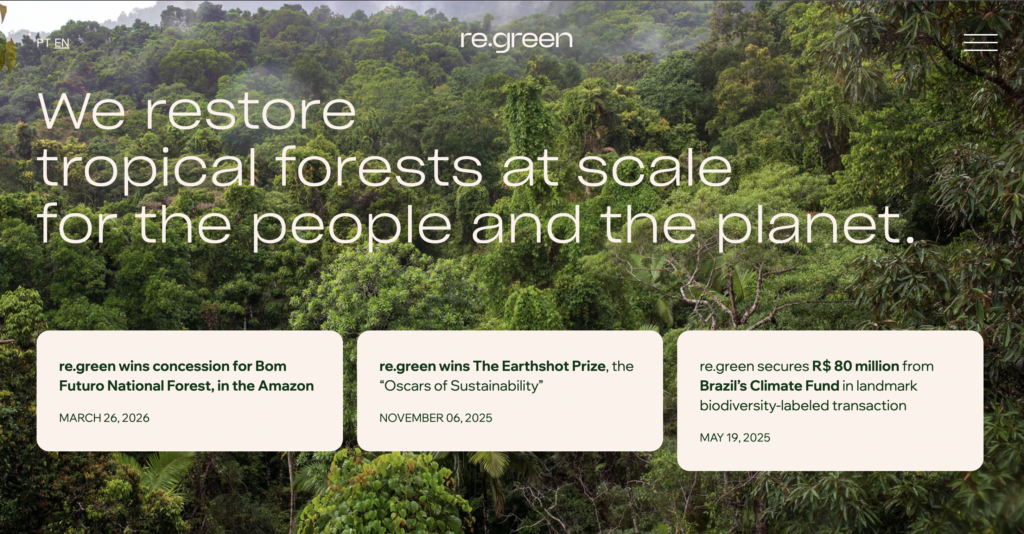 The company’s own materials help explain the scientific roots. Re.green says founder Bernardo Strassburg and partner Pedro Brancalion were recognized in 2022 among the most influential Brazilian scientists in the world, and Reuters reported in 2025 that the company had secured 80 million reais in financing from Brazil’s Climate Fund with Bradesco support. Reuters also noted that the startup buys degraded land or partners with landowners to replant native species, and that it is backed by investors including João Moreira Salles, Dynamo, Gávea, and supported by corporate players such as Microsoft. Earthshot’s 2025 profile adds that the company had already created more than 230 jobs and trained nearly 300 people.